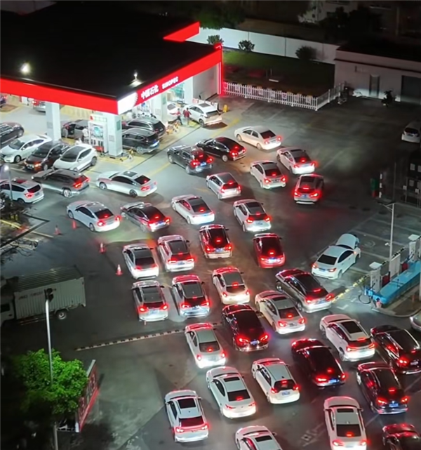 网友拍摄的大涨地加队视频显示,不少地方的幅网加油站,从早上开始就排队加油,拍多排长后面等待加油的明日车辆,甚至已经排到加油外的主干道上。