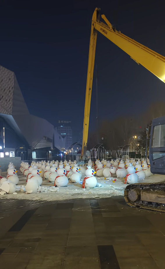 最高气温冲破0℃!欧交易所官网哈尔滨18米高巨型“雪王”被拆除