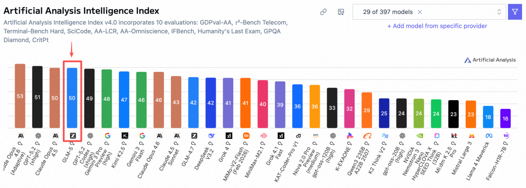 智谱刚刚上线并开源了 GLM-5,官方称 GLM-5 在 Coding 与 Agent 能力上,取得开源 SOTA 表现,在真实编程场景的使用体感逼近 Claude Opus 4.5,擅长复杂系统工程与长程 Agent 任务。在全球权威的 Artificial Analysis 榜单中,GLM-5 位居全球第四、开源第一。