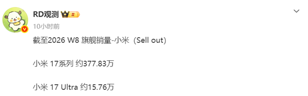 此次统计中,系列销量小米17系列除整体销量377.83万台外,逼近其Ultra版本单独销量为15.76万台。功反