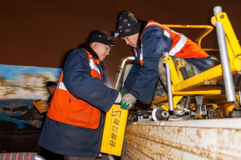 国铁北京局北京高铁工务段廊坊高铁线路车间北京南维修工区的打磨工人们,只能在凌晨0:30至4:30的平安“天窗时间”进行作业,此时,医生高铁线路暂时封锁,新春没有列车通行。走基北京南维修工区负责北京南站城际场、层钢高速场共计75组道岔、轨毫38公里线路的米级养护维修任务。春运里,列车开行密度增加,可供维修高铁线路的“天窗”减少,因此,工友们更加抓紧在轨道上进行养护维修的时间,以保证钢轨的状态良好,让乘坐列车的旅客安心回家过年。