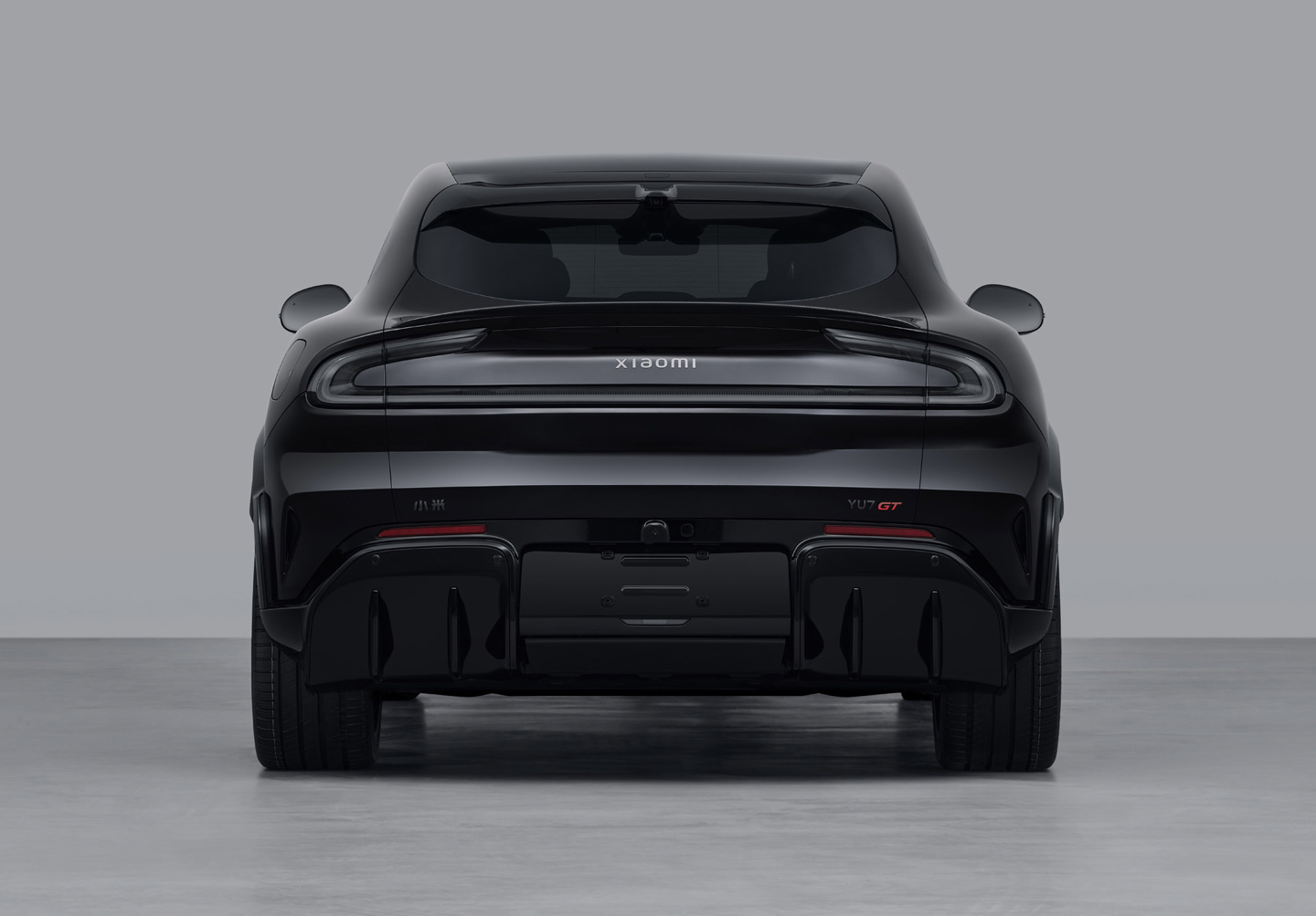 车尾方面,新车延续了小米 SU7 诸多经典设计,比如造型动感的小鸭尾,极具辨识度的“光环尾灯”。此外,新车在尾部采用了极其夸张的立刀式扩散器,运动感十足。