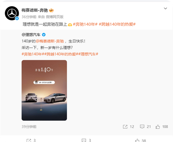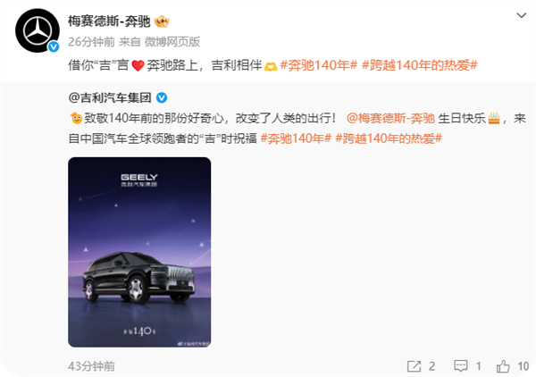 排面拉满!奔驰14欧交易所app官网入口0岁生日 小米汽车等一众车企发文致敬