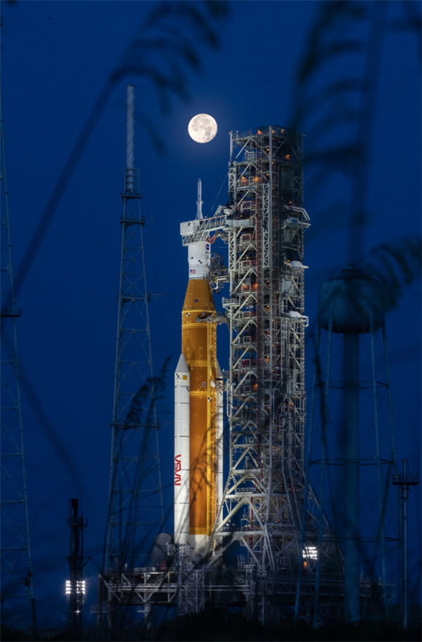 四台RS-25主发动机和两个17层楼高助推器一起点火,产生4000吨推力,带着2700吨的火箭起飞,最终将到达37万公里之外的深空,在月球背面与其距离约7400公里。