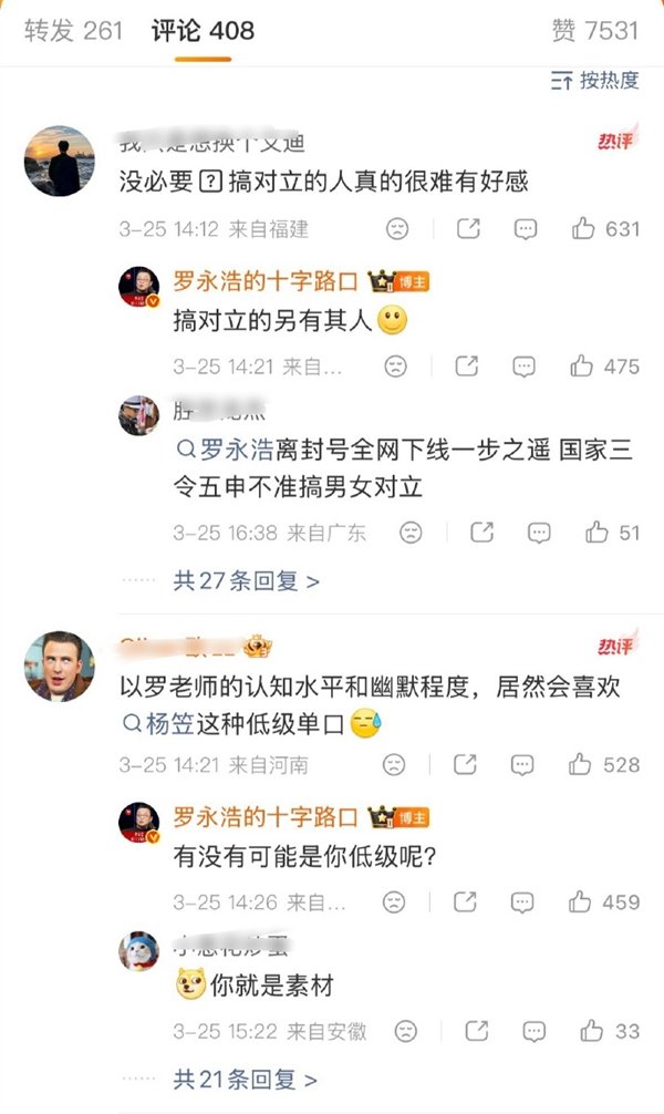 对此,罗永浩也没惯着粉丝,直接下场回复,并最新发文表态称:拉黑办的同事们这两天辛苦一下,把评论中的普信男和普信女通通拉黑这两伙极端分子根本听不懂人话,而且搞得评论区乌烟瘴气。
