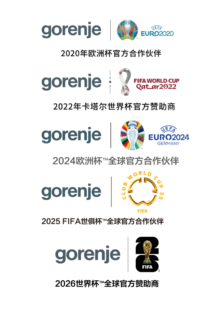 2018年至2026年,艺术家电gorenje连续七年成为男子手球欧洲锦标赛主赞助商;在欧洲杯™、世界杯™、欧洲足球锦标赛™等顶级足球赛事中,艺术家电gorenje的身影亦多次亮相。2026年,品牌将以官方赞助商身份亮相美加墨世界杯™——从雪原到绿茵,运动员以千百次训练,换取竞技体育的次次突破;艺术家电gorenje亦以匠心精神打磨每一件产品,创造简雅生活的更多可能。