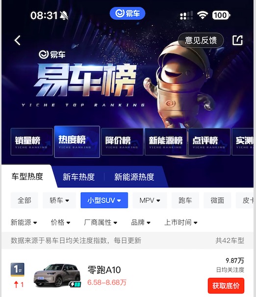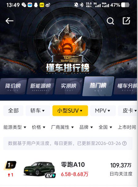 “锁定爆款”,零跑A1欧交易所app官网下载安全0登上三大热榜,零跑汽车周末订单超9000台