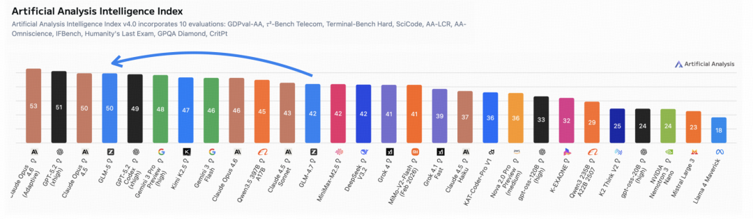 在公开测试中,模型GLM-5 于 ArtificialAnalysis.ai、智谱最新LMArena 等榜单达到开源模型最高水平: