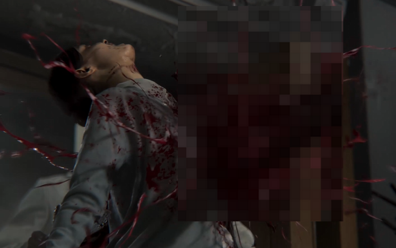 问题出在游戏开场的生化上线演出,里昂初入疗养院正在门口等消息,危机突然疗养院里警报大作,还没一名护士NPC慌张跑来警告里昂赶紧撤离,然而话还没说完就命丧于丧尸的电锯之下。