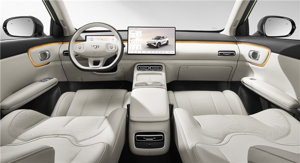内饰采用环抱式座舱设计,配备15.6英寸2.5K中控屏、10.17英寸全液晶仪表、全车8枚扬声器等,符合当下年轻消费者购车需求,前排有效头部空间达1008mm,二排头部空间990mm,后备厢空间可扩展至1380L。