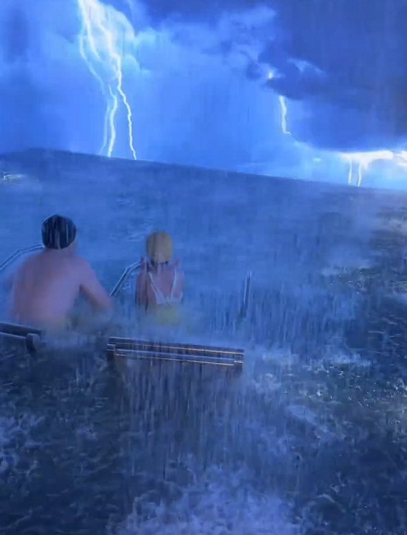 据悉,泡澡欧义体验时,场面出现游客身处40℃左右的堪比恒温泡池中,周围通过灯光、渡劫音响、沈阳水雾系统模拟电闪雷鸣、雷电狂风暴雨,交加并从顶部喷出温热“雨水”,给游客带来4D体验。