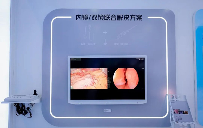 本次索尼的大尺寸43寸4K 2D 医用监视器主要展示了内镜/新应用如双镜联合,凭借设备的高分辨率、专业分屏、低延迟同步等优势,实现单屏同时清晰显示双镜联合两路画面,大幅提升手术精准度、协作效率与安全性,同时简化手术室布局。