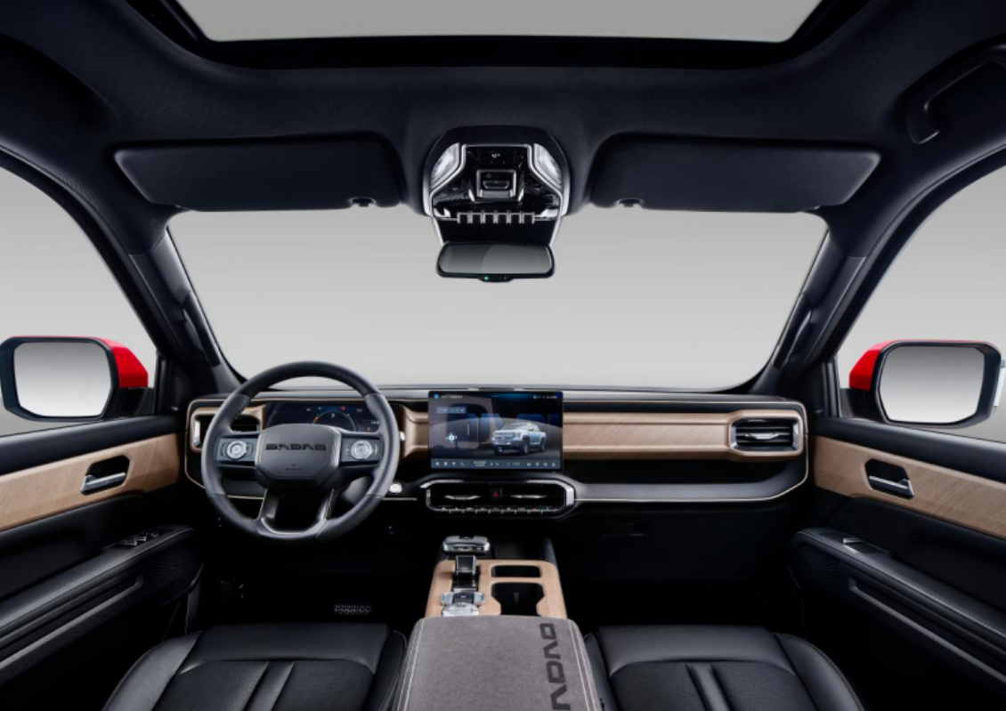 此外,该车还配备钻石切割双透镜 LED 大灯、机甲风宽体家族格栅、EMOD 四驱、3 吨拖拽力、1000W 大功率电子风扇强效散热、285 宽胎与 17 寸防脱圈轮毂,全车预留 10+ 个改装接口、6 个飞机键开关。
