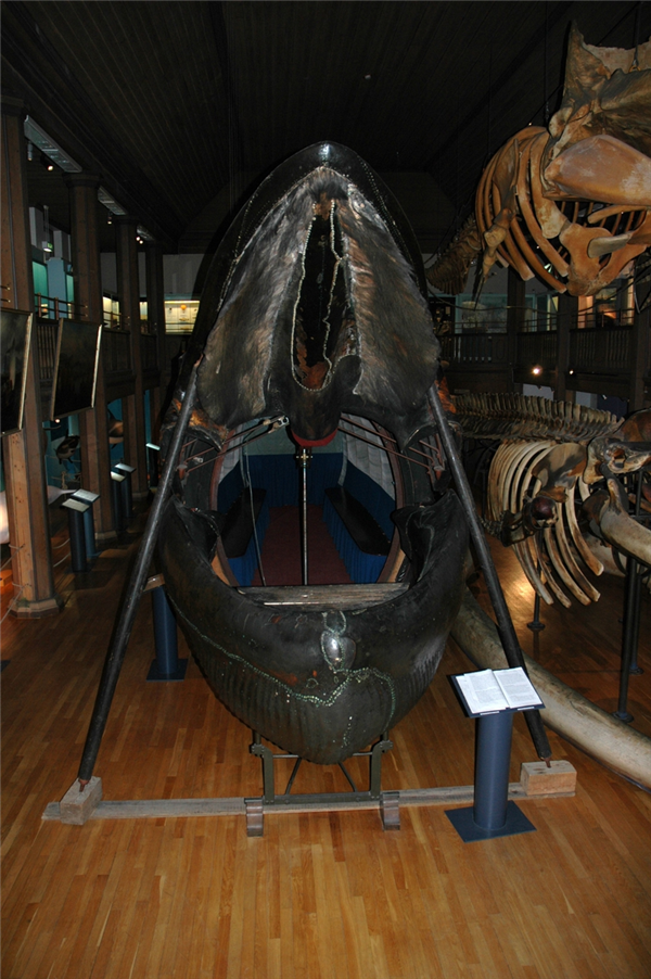 在博物馆里,蓝鲸我们看到的标本鲸鱼标本大多是骨骼标本和模型,极少有像马尔姆鲸标本那样保留整张鲸鱼皮肤的打能坐。