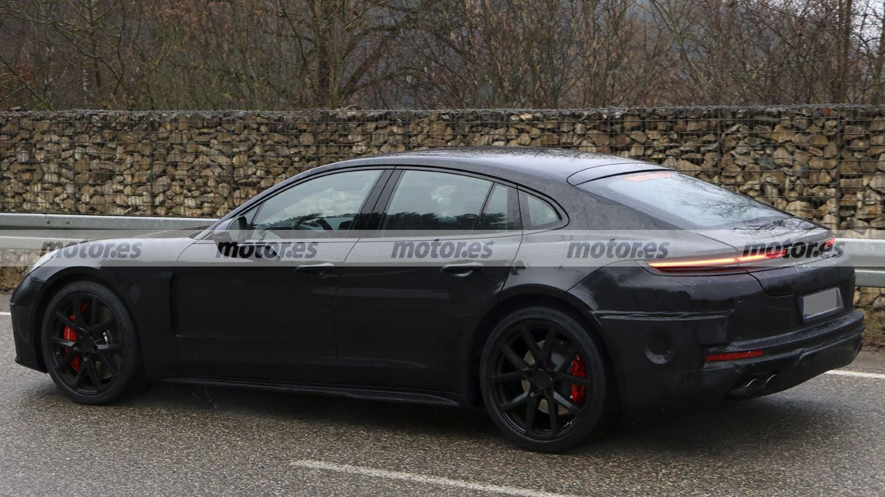 车尾改动同样明显。保时别版尾灯部分区域贴有黑色胶带,捷新掩盖新的明晚灯光样式,并遮住中央发光的保时捷字样。后保险杠角落新增部件,略微调整整体轮廓,四出排气周围的中央区域也进行了结构更新。